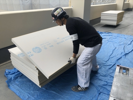 マンションやビルなどの指示された場所へ材料や道具を運び入れる